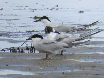 左がアジサシ、右がコアジサシ、下がミユビシギ。