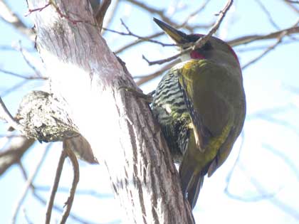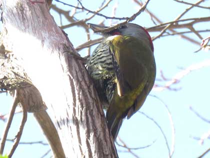 頭や首のあたりが赤いのでアカゲラのようですが、体の黄緑色からアオゲラという和名が付いたとの事です。