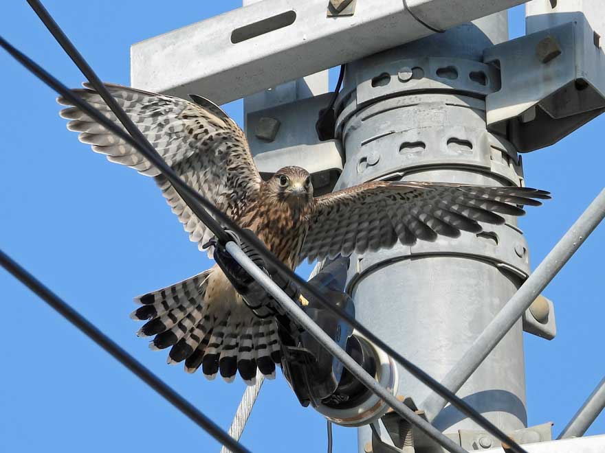 電柱や屋根の上にチョウゲンボウが止まっていました。