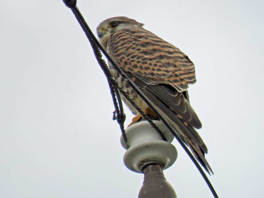 電柱のてっぺんにチョウゲンボウのメスが止まっていました。