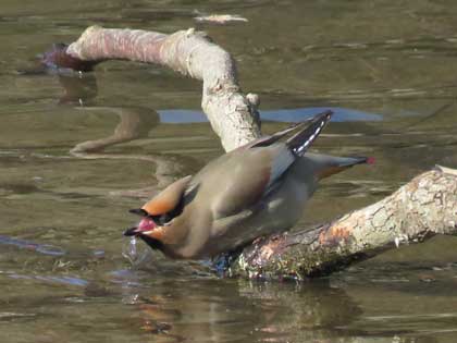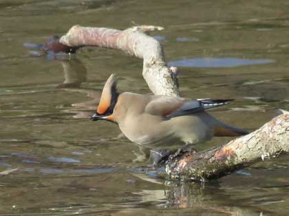 ロープウェイ乗り場の目の前にヒレンジャクが飛んで来ました。