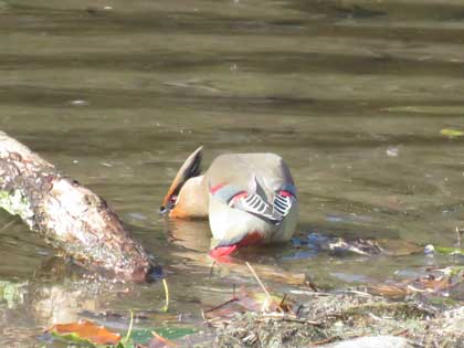 初めて鳥の写真を撮ろうと思って家の前の森に入ってみました。夕刻近くて薄暗く、何か分かりませんが鳥の写真が撮れました。パソコンに取り込んで調べたら、「ヒレンジャク」という聞いたこともない鳥でした。赤や白の縞模様が写っており、こんな珍しい鳥が目の前の森にいるとは思ってもいませんでした。